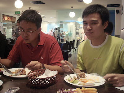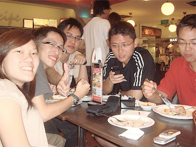 so we proceeded to j8 secret recipe for dinner... muahahahaha should have seen zhenwei man! hahahahahahaha, peishan n i went to toilet n she left her phone on the table (so the guys dabbled with it!). zhenwei changed his no to "ghostrider's" no n den messaged her, "have u finished dinner yet? im behind u. hurry the bike's burning a big hole on the ground n im burning too haha"! OMG WAHAHAHAHAHAHAHAHAHAHA. i couldnt stop laughing. zhiyong was askin me to read the msg, i read half-way n burst out laughing, couldnt finish reading the rest of the sentence. omg so funny, can laugh until have abs man. hahahahahhahahaa......