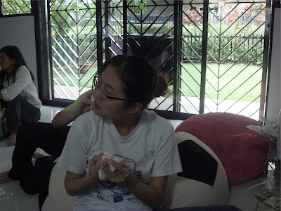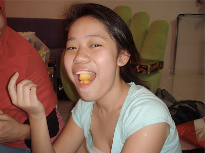 course i got off easy bcos everyone else after tt had to increase the no of cheezels in their mouths (i only had 3! yus n peishan got scot free! haha) shld i show....? everyone looks so unglam.... haha.