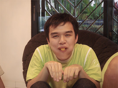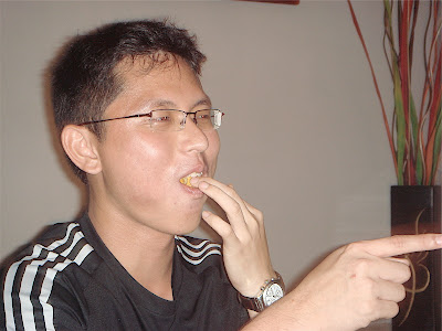 den after we finished the game, we decided on a game tt involved everyone. oh yes, the pple who were there included: yus, yijing, peishan, cindy, amanda, me, damian, zhiyong, zhenwei, mat and bingcheng. pretty good turn-out act. we played indian poker! haha, big group game, n we were all so nice to each other. we kept helping each other. so much so i was the 1st to lose! e forfeit was cute: shove my mouth full of cheezels n take picture of it.
