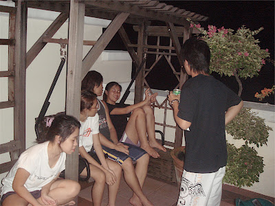den we had the bbq - haha i cant wrap the fish for nuts, i did such a horrible job! mao is so much better at it than me. hee hee. not very domesticated u know.... good food, cheesy sausage, crayfish, chicken wings, fried rice, lamb, otah, sweet corn and melting marshmallow. IM SO GONNA PUT ON WEIGHT (in addition to the ice delicious blended with cream the previous night with lydia). shit, i gotta go work it off. we lazed around the rooftop (he has a rooftop!) where the grill was. and a swing! i love the swing haha.... den of course, talked a lot of cock - including heroes!!! i love heroes!!! when is the show restarting???!!! those guys r really close to each other man.... so sweet... haha, i wonder whether ill be able to get close to my anat grp like tt. hope so.