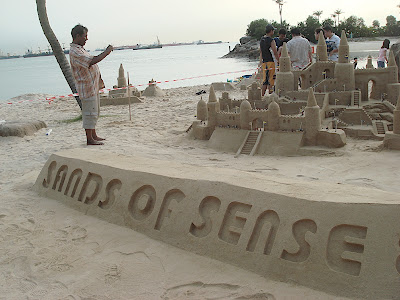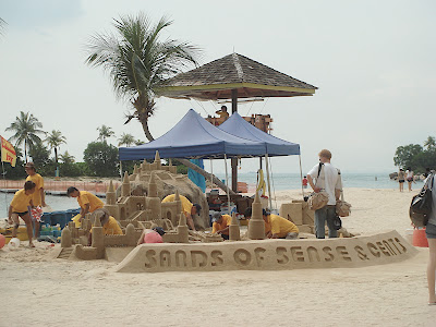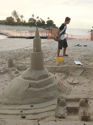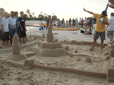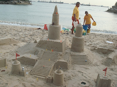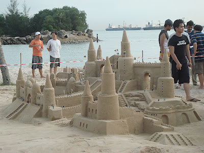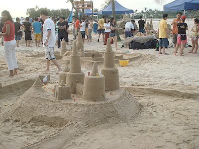 im pretty tired from today too. had fun at sentosa, lucky it didnt rain, drizzled a bit only. went cafe del mar with bock and there was a sand castle building competition!